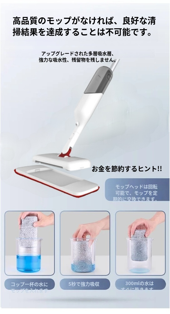 怠け者家庭用フラットモップ 吸水性省力多機能ボディスプレーモップ
