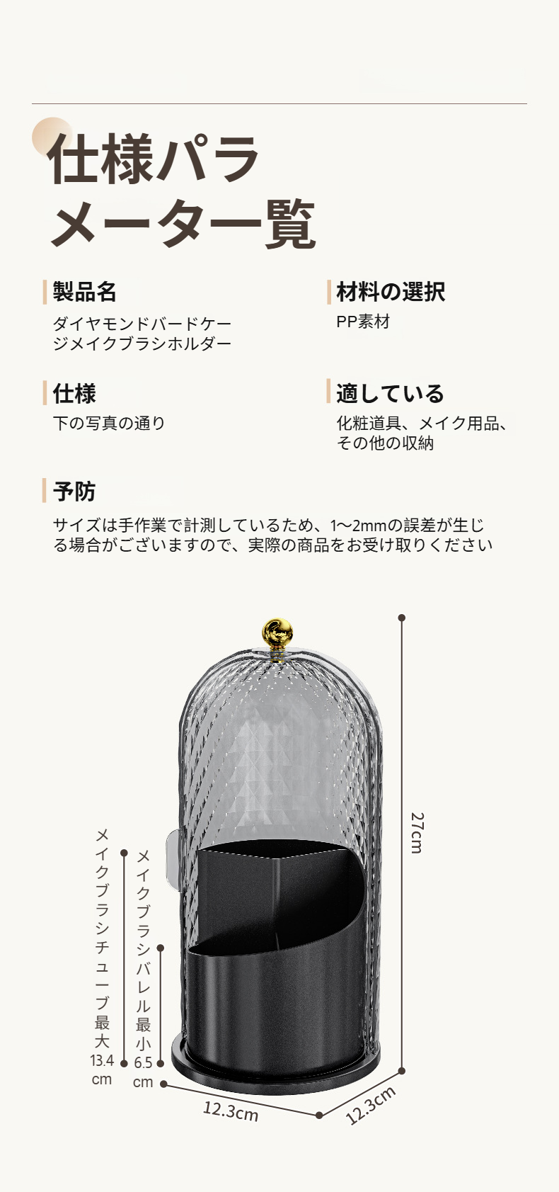 高級ダイヤモンド柄の回転式化粧品収納ボックス正面画像
