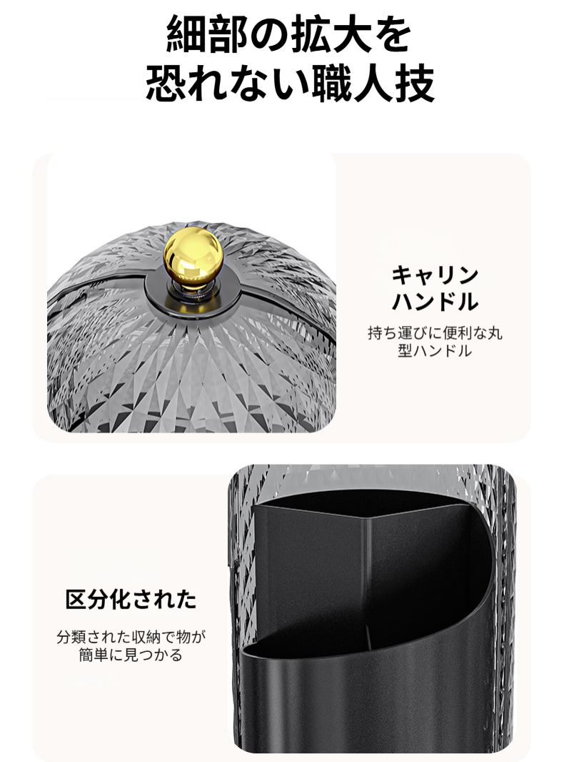 回転式化粧品収納ボックス 軽量 高級ダイヤモンド柄 デスクトップコンパートメント 収納チューブ 透明蓋 防塵 メイクアップボックス