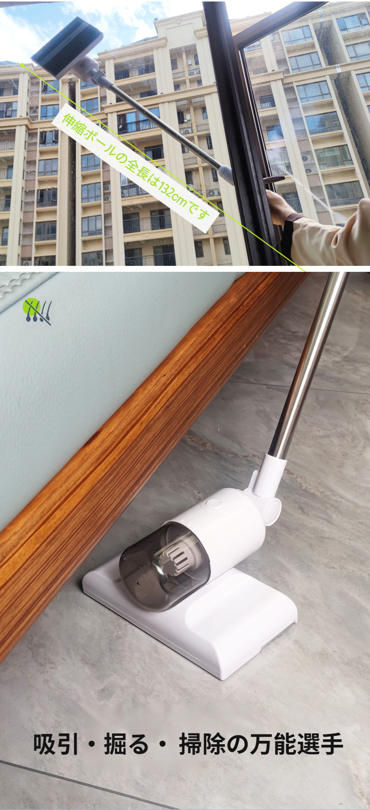 充電式伸縮式ガラス拭き機の使い方